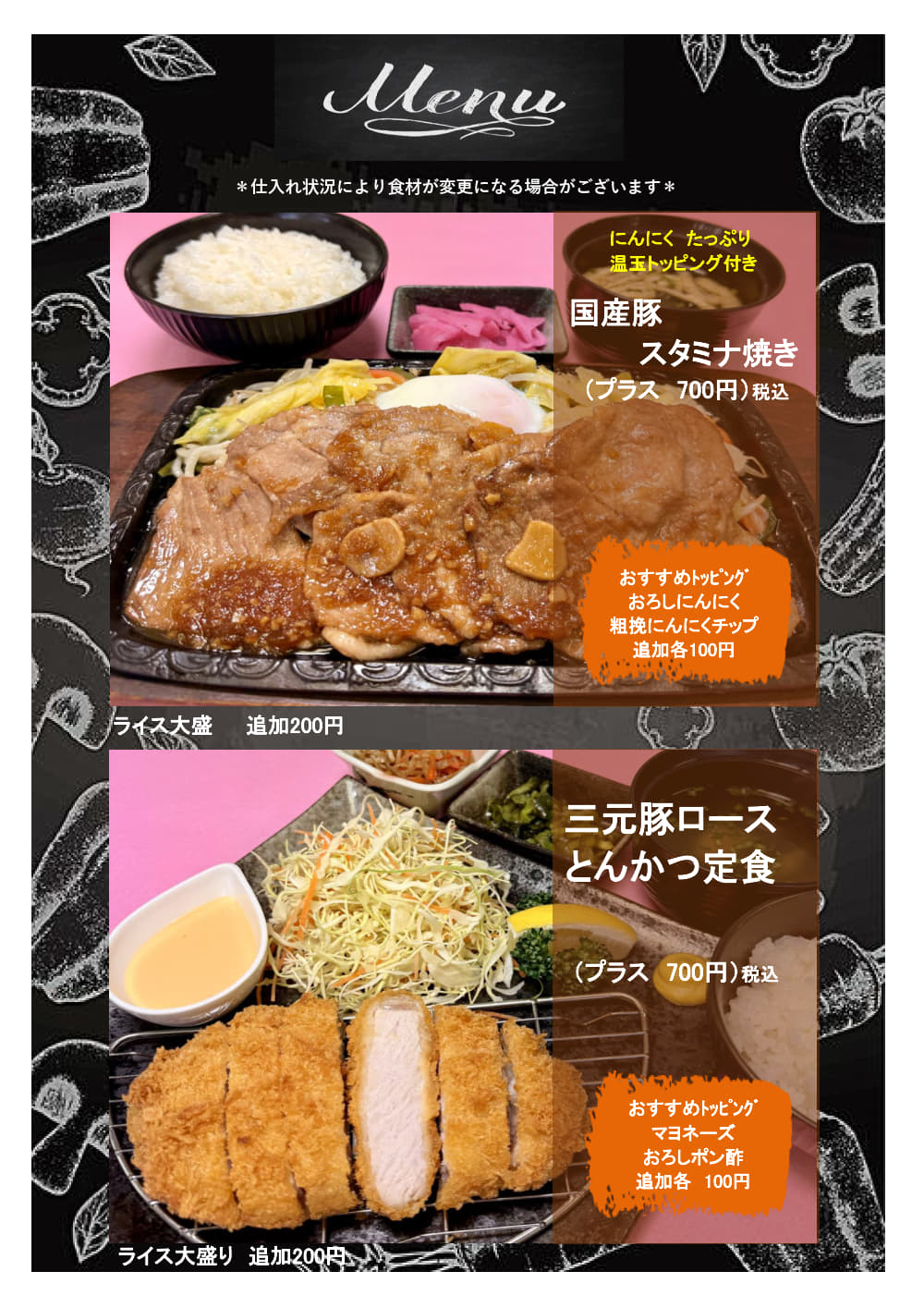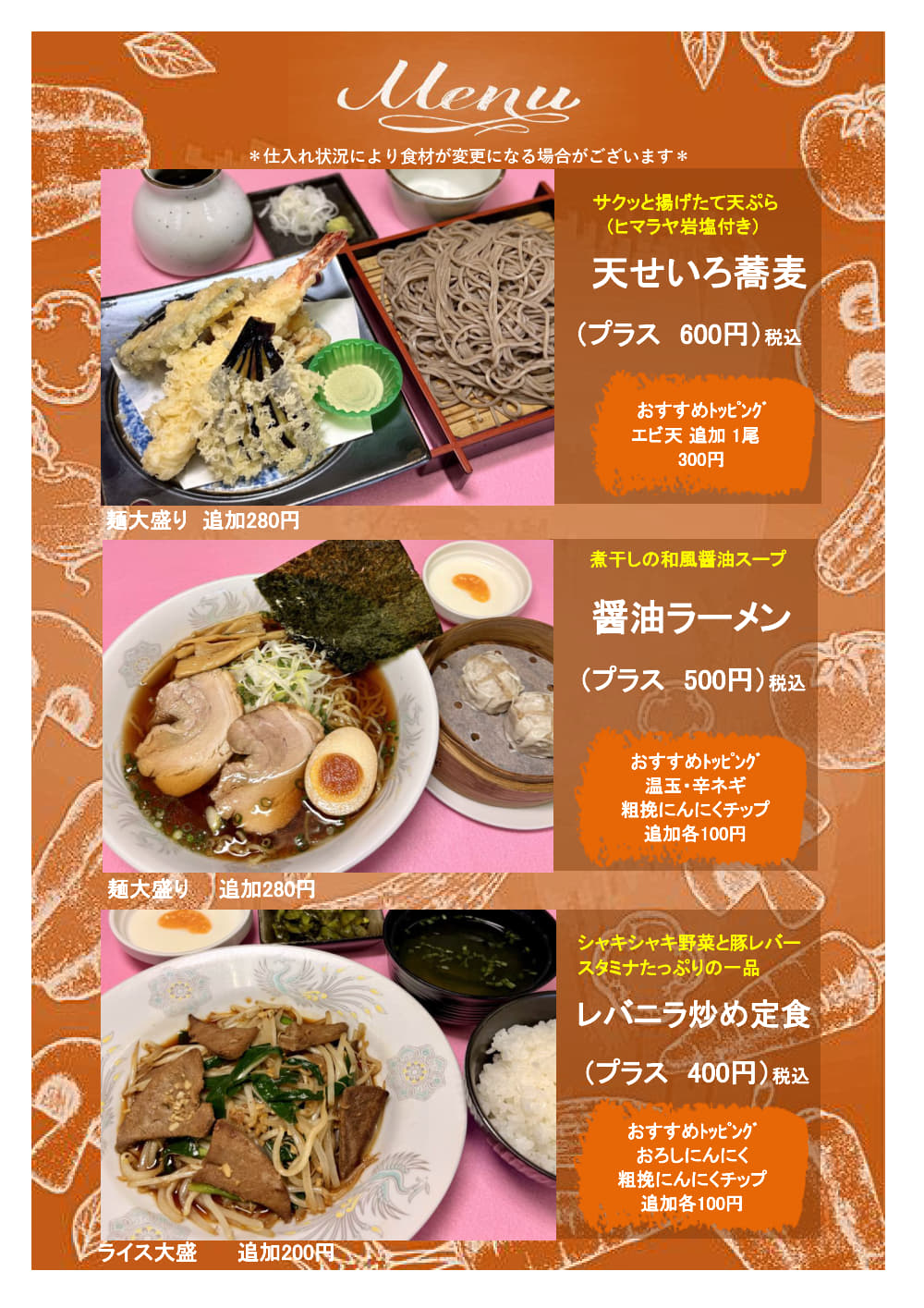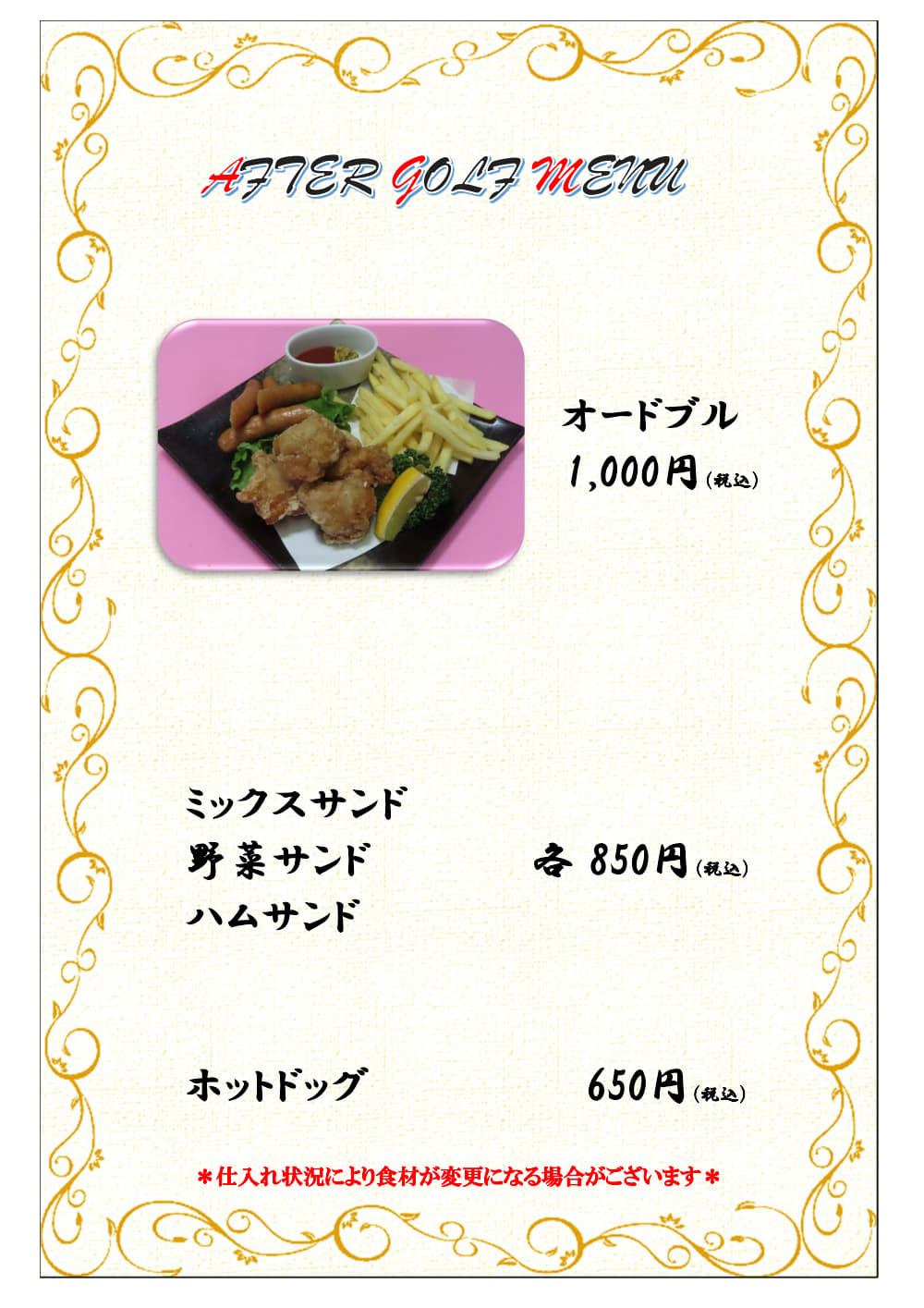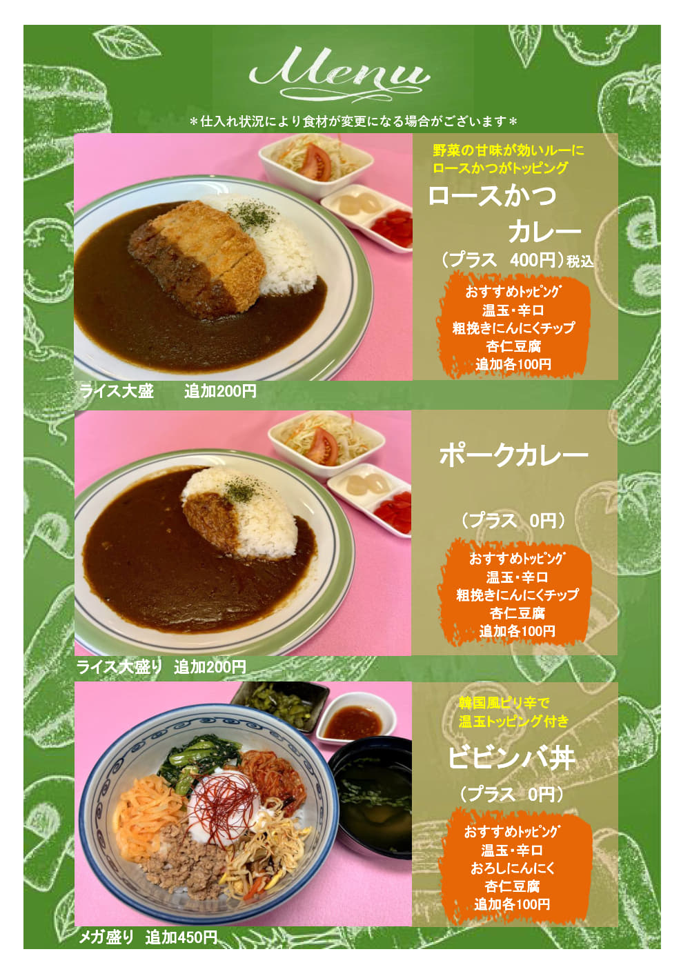 レストランメニュー