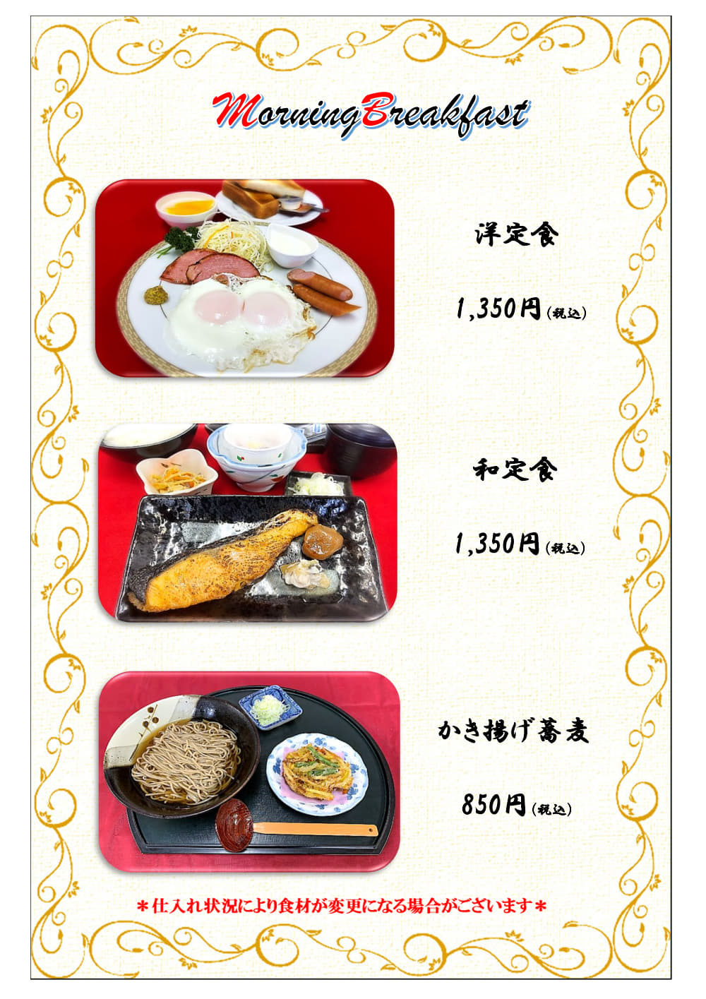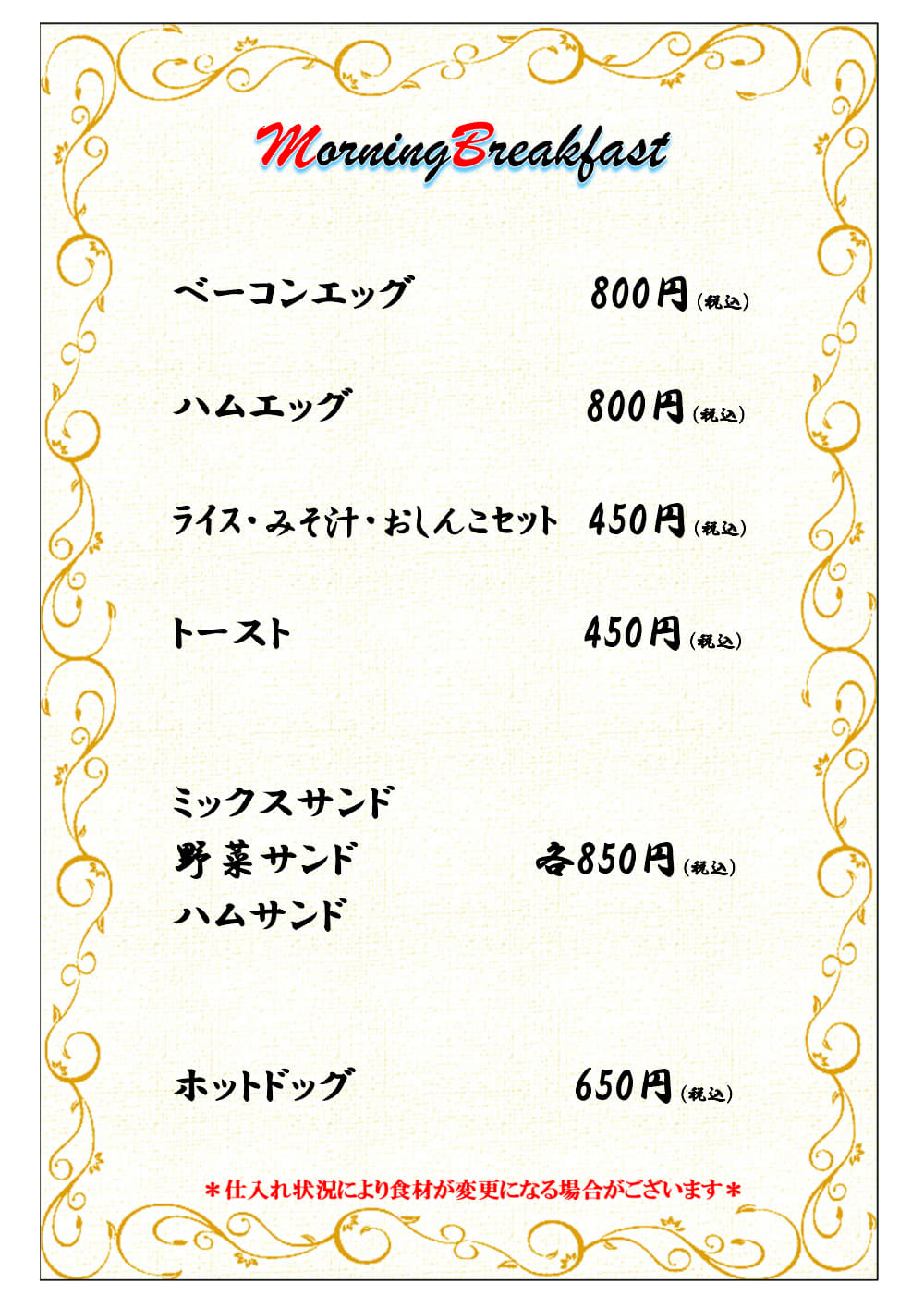 朝食メニュー